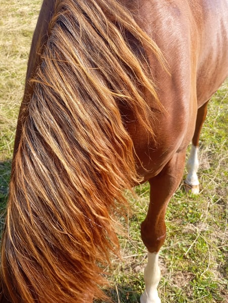 QH stallion born 13.04.24, 6 panel N/N via the parents, sorrel, "Murphy" is a very curious, people-oriented and fearless little stallion, he grows up with us in a species-appropriate manner in the herd on large pastures. He will be sold in the fall after weaning, of course with AQHA paper and equine passport, he can also stay with us for further breeding by arrangement, NRHA Germany and Euro will be paid. Due to his pedigree he is very interesting not only for reining but also for cowhorse. Further information by phone