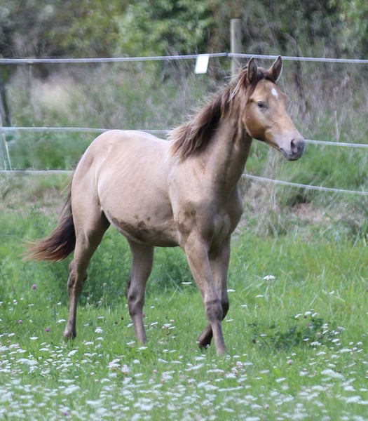 Fred ist ein ausdrucksstarkes Nachwuchspferd mit allem, was man sich von einem zuverlässigen Freizeit- und Amateuersportpferd wünscht. Er besticht durch sein ruhiges, freundliches und aufgeschlossenes Wesen sowie durch ein korrektes, harmonisches Gebäude mit kräftigem Fundament. Seine außergewöhnliche Farbe macht ihn zudem zu einem echten Blickfang. Abstammungstechnisch ist Fred hervorragend aufgestellt: Seine Mutter Chexalotta ist eine direkte Nu Chex To Cash-Tochter und steht für bewährte Reining- und Allroundgene. Der Vater Triple Frozen Dunit ist ein reinerbiger Foundation-Hengst von Triple Jet Cee Jay, der mittlerweile erfolgreich in Kanada geshowt wird. Fred eignet sich ideal für den ambitionierten Freizeitreiter sowie für den Einstieg in den Amateuersport. Ein ehrliches, korrekt gebautes Pferd mit tollem Charakter und interessanter Abstammung.