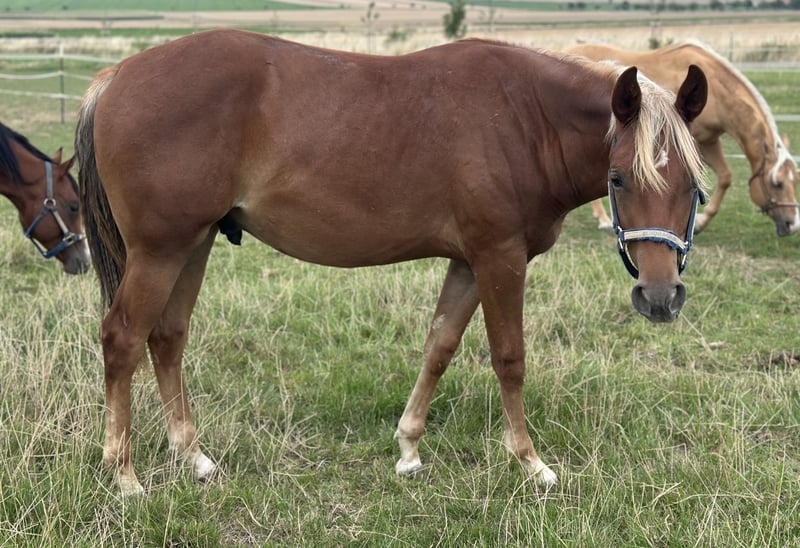 If you are looking for a great partner for sports or as a leisure companion, Sirius is the right choice! He has a very curious and open character and knows the basics of foal training. Sirius has very elegant gaits and is sure to grow over 150cm tall. 7 Panel n/n Registered with NRHA Germany and can also be registered with EWU upon request. Sirius can also stay for breeding. He has very good papers and a great color! Contact Info: Telephone: 015129140272 Email: esther.aschitsch@gmx.de