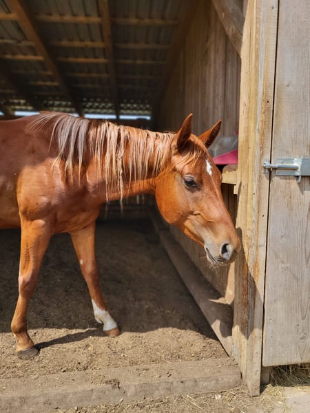 We are also looking for a 5 star home for our "Leo". The cool Quarter Horse stallion (born 2023) saw the light of day with us. His parents are also on our farm: Dam: TL Blue Alice (Aint It The Blues) Sire: Zippos King Bar Leo is a "cool sock" in every respect. He wants to please his owner at all times and is always calm and quiet. He has an athletic, correct conformation and is blessed with an outstanding gait. He is suitable for both competitions and leisure time. He is currently still a stallion and shows no stallion behavior. He is simply a treasure to handle. He has learned everything you need to know at this age: Giving hooves, introducing him to the farrier, grooming, showering/washing, walking/leading. Leo has all his basic vaccinations, is regularly wormed, has a DQHA equine passport and an AQHA certificate of registration. He is currently being bred with other young horses at our stables. He can either stay here for further rearing or move to his new home. If you would like to get to know Leo, just write to us.