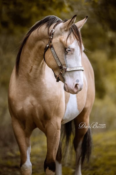 With a heavy heart, we are looking for a new home for him. He has been used as a breeding stallion so far. No natural covering, only artificial insemination. He is well-mannered, stands in a paddock box. But of course, he is a stallion. He was started as a young horse but this was not pursued further. Therefore, he is for sale as unbroken! At just under 142 cm, he is not the tallest but covers well due to his broad build. He has an amazing pedigree (HF MOBSTER), his color genetics leave nothing to be desired, plus he is 7 panel nn and also double registered. So inquiries such as: Is he suitable for beginners? NO. Can he be turned out with others? NO. Can I try him out? NO. Can I trade or pay in installments? NO. We do not send 1000 pictures or videos. Anyone interested should come and see him. There may be other stallions for sale. Inquiries via WhatsApp.