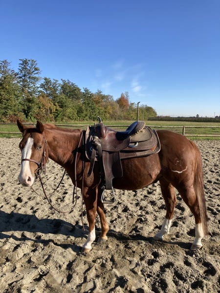 💥VERKAUFE💥 5-jähriger Quarter Horse Hengst mit einem wunderbaren Charakter und einer statuenhaften Erscheinung. Er beherrscht alle Manöver (Reining-Training) und hat bereits an mehreren regionalen Wettbewerben in den Kategorien Jugend und Non-Pro teilgenommen. Er befindet sich in Piemont, Provinz Cuneo. Preis: 8.500 €. 3791795850