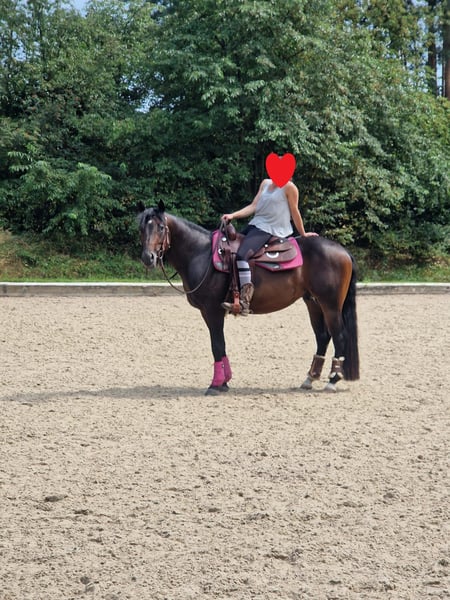 OH Peppermints Power, geboren im Mai 2020, ist ein bildhübscher brauner Quarter Horse Hengst mit einem Stockmaß von etwa 148 cm. Er besticht durch seine korrekten, vielversprechenden Proportionen und ist sowohl körperlich als auch gesundheitlich bestens entwickelt. Geimpft, entwurmt und regelmäßig vom Hufschmied betreut, wuchs Pepper unter optimalen Bedingungen in der Herde auf. Läuft zurzeit barhuf. Sein Charakter ist einfach außergewöhnlich: menschenbezogen, freundlich, lernwillig und absolut nervenstark. Pepper ist zuverlässig, geländesicher und problemlos nach Pausen reitbar. Ist ready to show in den Ranch Klassen und wechselt auch schön. Der Hengst kennt sowohl Offenstall als auch Box und lässt sich problemlos alleine verladen. Er ist aufgeschlossen, brav und eine echte "coole Socke". Pepper zeigt eine gute Bewegungsqualität und viel Talent für den Sport, insbesondere für Ranch-Klassen. Mit seiner sehr guten Reining-Abstammung und alten Blutlinien (Enkel von Hollywood Dun It/Doc Chex Brother) ist er ein vielversprechendes Nachwuchspferd, das sowohl im Sport als auch als treuer Begleiter überzeugt. AQHA-Papiere sowie Equidenpass liegen vor, und auf Wunsch kann er auch kastriert werden. OH Peppermints Power ist ein absolutes Traumpferd mit einem Charakter aus Gold - bereit, in Ranch-Klassen zu zeigen, was in ihm steckt.