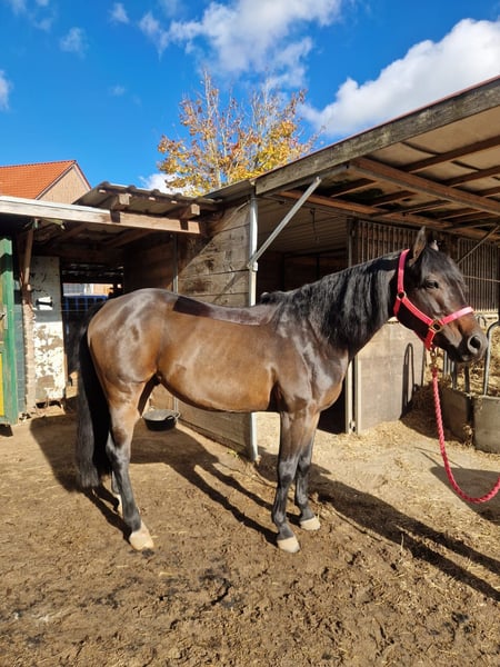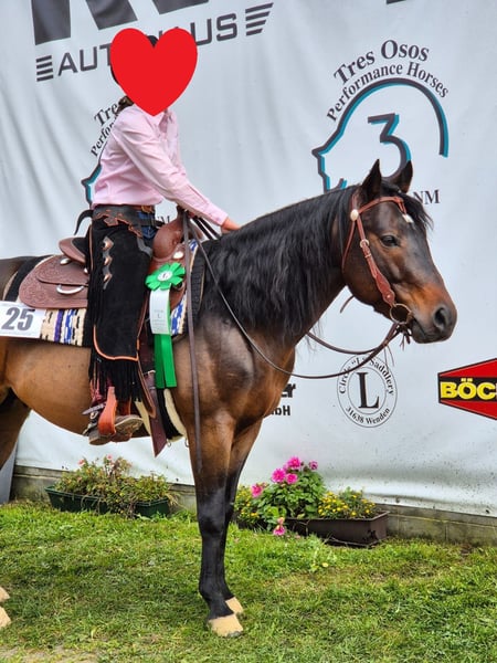 OH Peppermints Power, geboren im Mai 2020, ist ein bildhübscher brauner Quarter Horse Hengst mit einem Stockmaß von etwa 148 cm. Er besticht durch seine korrekten, vielversprechenden Proportionen und ist sowohl körperlich als auch gesundheitlich bestens entwickelt. Geimpft, entwurmt und regelmäßig vom Hufschmied betreut, wuchs Pepper unter optimalen Bedingungen in der Herde auf. Läuft zurzeit barhuf. Sein Charakter ist einfach außergewöhnlich: menschenbezogen, freundlich, lernwillig und absolut nervenstark. Pepper ist zuverlässig, geländesicher und problemlos nach Pausen reitbar. Ist ready to show in den Ranch Klassen und wechselt auch schön. Der Hengst kennt sowohl Offenstall als auch Box und lässt sich problemlos alleine verladen. Er ist aufgeschlossen, brav und eine echte \"coole Socke\". Pepper zeigt eine gute Bewegungsqualität und viel Talent für den Sport, insbesondere für Ranch-Klassen. Mit seiner sehr guten Reining-Abstammung und alten Blutlinien (Enkel von Hollywood Dun It/Doc Chex Brother) ist er ein vielversprechendes Nachwuchspferd, das sowohl im Sport als auch als treuer Begleiter überzeugt. AQHA-Papiere sowie Equidenpass liegen vor, und auf Wunsch kann er auch kastriert werden. OH Peppermints Power ist ein absolutes Traumpferd mit einem Charakter aus Gold - bereit, in Ranch-Klassen zu zeigen, was in ihm steckt.