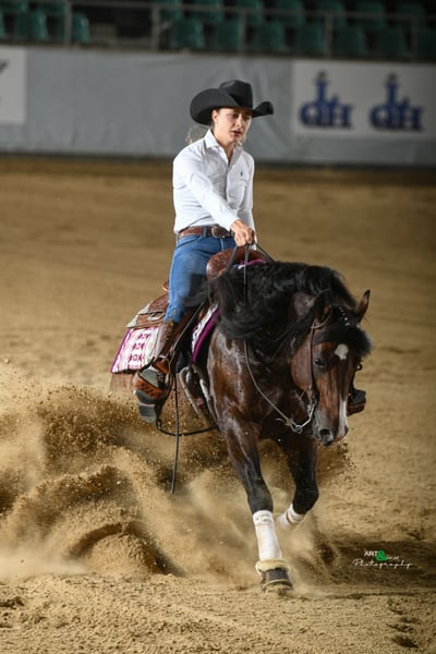 RS ZEUS OLENA ist ein 2016 geborener Quarter Horse Hengst er bringt alles mit, was sich Non Pros wünschen: einen ausgeglichenen, klaren Charakter und absolute Nervenstärke – im täglichen Umgang wie auch im Sport. Durch seinen VaterSPAT OLENA (Million Dollar Sire) und MCJAC FLASH auf der Mutterseite, stammt er aus bewährter Reining Linien die für leistungsstärke und Athletik stehen. Doch sein größter Pluspunkt ist sein Wesen: ruhig, ehrlich, unkompliziert und jederzeit zuverlässig. Ob Stall, Training, Turnier oder Deckstation – er bleibt immer cool, unkompliziert und lieb. Sein Talent für Reining-Sport insbesondere die Stopps, ist unverkennbar. Er bringt natürliche Anlage, Übersicht und Bereitschaft mit – dazu einen kompakten, korrekten Körperbau mit stabilen Beinen, der ihn zu einem funktionalen und langlebigen Reitpferd macht. Er zeigt keine Hengstmanieren, ist leicht im Handling und macht jeden Tag aufs Neue Freude – ganz gleich, wer mit ihm arbeitet. Ein echtes Verlasspferd für jeder Man. LTE ~ $6000