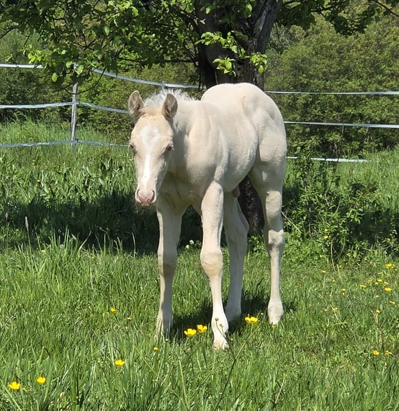 Reining Prospect ICE CROME VOODOO aka ICE (Born April 2025) AQHA Cremello colt is looking for a new home for both pros and amateurs alike. Sire: Call Me Mr Voodoo (by Shiners Voodoo Dr) Dam: Hollywoodcromebarbie (by Boggierima Jac out of a Custom Crome mare) 6 Panel n/n through the parents He is growing up in a herd environment and is well socialized. He will be weaned in the fall and will be sold with foal ABC. Upon request, he will be nominated for the FNP NRHA Germany, the IRHA Italian Breeders Futurity, and the NRHA European Futurity. Location: Austria For more information, feel free to contact via WhatsApp.
