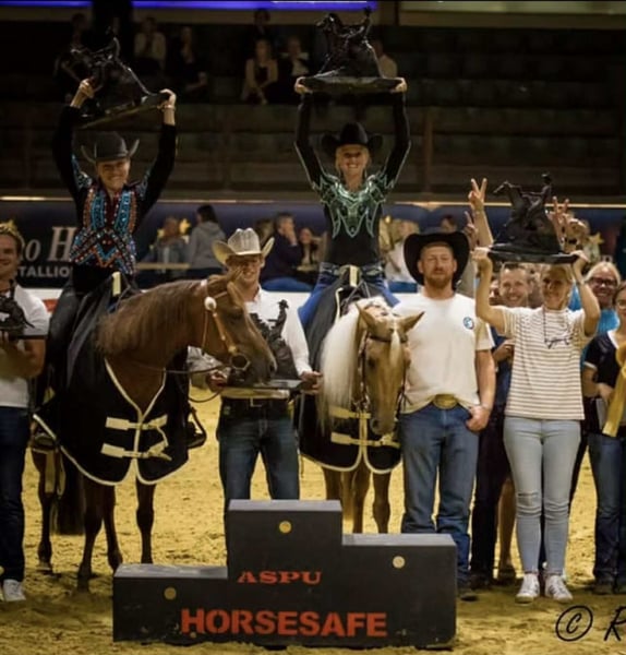 🌟 Te koop: Infinity 66 (“Aster”) – veelbelovend Quarter Horse hengstveulen 🌟 Geboortedatum: 6 juni 2025 Afstamming: Lil Dancing Queen x ND Pop Gun Trash (Gunnatrashya) Maak kennis met Infinity 66, roepnaam Aster – een uitzonderlijk hengstveulen met een gouden toekomst in de Reining sport. Aster is het resultaat van een bewezen combinatie tussen Lil Dancing Queen en ND Pop Gun Trash, een hengst uit de populaire Gunnatrashya-lijn. Deze match werd bewust gekozen vanwege de sterke bloedlijnen én de eerdere succesvolle nakomeling uit dezelfde combinatie. ✨ Afstamming & prestaties: • Moeder: Lil Dancing Queen – zelf NRHA-earner met $1.850 lifetime earnings en offspring earnings van meer dan $43.000. • Vader: ND Pop Gun Trash – zoon van de legendarische Gunnatrashya, bekend om zijn uitstraling, atletisch vermogen en sterke verervingskracht. 🐴 Over Aster: Infinity 66 is een vriendelijk, nieuwsgierig en energiek veulen dat nu al graag zijn natuurlijke talenten laat zien in de weide. Hij beweegt soepel, met veel balans en expressie – eigenschappen die hem perfect maken voor de Reining arena. Aster heeft het potentieel om, net als zijn zussen, uit te blinken in de sport. Wij zoeken voor hem dan ook een showhome waar hij de kans krijgt om zich volledig te ontwikkelen en te schitteren. 📍 Samenvatting: • Quarter Horse hengstveulen • Geboren: 06/06/2025 • Kleur: sorrel • Afstamming: Lil Dancing Queen x ND Pop Gun Trash (Gunnatrashya) • Verwachte discipline: Reining • Karakter: lief, nieuwsgierig, atletisch 💫 Infinity 66 – geboren om te bewegen, gefokt om te presteren.