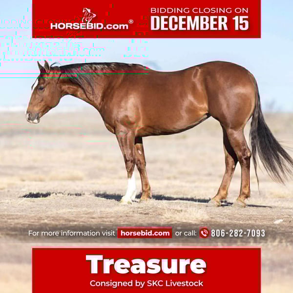 🎄𝐓𝐇𝐄 𝑯𝒐𝒍𝒊𝒅𝒂𝒚 𝐂𝐋𝐀𝐒𝐒𝐈𝐂🎄 Happening now thru MONDAY | DECEMBER 15th - Available EXCLUSIVELY on HorseBid's website! For more details and to register visit: www.Horsebid.com CONSIGNOR CONTACT: SKC Livestock 806-282-7093 LOCATION: Canyon TX BREED: Quarter Horse REGISTERED: Yes REGISTERED NAME: Treasured Mercedes COLOR: Sorrel HEIGHT: 15 AGE: 9 GENDER: Mare