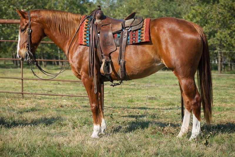 𝐉𝐀𝐍𝐔𝐀𝐑𝐘 ⭐️𝑨𝒍𝒍 𝑺𝒕𝒂𝒓 𝑳𝒊𝒏𝒆𝒖𝒑⭐️ Happening now thru MONDAY | JANUARY 26th - Available EXCLUSIVELY on HorseBid's website! For more details and to register visit: www.Horsebid.com CONSIGNOR CONTACT: Long Gone Horses 641-895-8175 LOCATION: Sulphur Springs, TX BREED: Quarter horse REGISTERED: Yes REGISTERED NAME: “JOLYN PALLYS SKY” COLOR: Sorrel HEIGHT: 15.1 AGE: 10 GENDER: Mare 🔥From Trails to Town to Cattle— Ember Does It All🔥 “JOLYN PALLYS SKY” (A.K.A as Ember) is a 2016 model AQHA mare standing 15.1 hands tall. This girl is built to last with a good bone structure and put together conformationally correct all the way around. She’s all chromed up making her a head turner everywhere you go. Ember is straight forward-no drama- get any job done. She stands tied well, tacks up easy, loads and unloads with no issues. She picks up all 4 hooves, stands to be grommed, good with baths, and easy for the vet. Ember is a tried and true trail horse. She will walk over big logs, go through deep water, and goes up and down steep hills. She is sure footed and can handle even the most intense trails with no quit to her. Ember has also been used to work cattle, from sorting pairs, moving to different pastures, and loading the trailers she is reliable for every job. In the arena Ember will walk, trot, and lope when asked, great stop and turns around easy. She has dabbled around in some fun shows with our advanced kids and they have really enjoyed her. Ember has also been rode down town and walks with ears forward happy to be there one foot in front of the other like she means business and looks good doing it. We do recommend an advanced beginner/intermediate rider for Ember. She isn’t hot or prancy but has a quick walk like she’s on salary pay and ready to get her job done therefore she may intimidate a timid rider but she is not mean or dangerous in ANY WAY! Ember is 100% sound she does not limp, can see out of both eyes, does not crib or weave, but she does have a very small hardly noticeable spot in her right eye. It won’t even pick up on a camera to show you but we want to be honest and call it for potential buyers. This is a very nice mare with the foundation breeding to back her up!