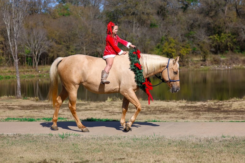 🎄𝐓𝐇𝐄 𝑯𝒐𝒍𝒊𝒅𝒂𝒚 𝐂𝐋𝐀𝐒𝐒𝐈𝐂🎄 Happening now thru MONDAY | DECEMBER 15th - Available EXCLUSIVELY on HorseBid's website! For more details and to register visit: www.Horsebid.com CONSIGNOR CONTACT: MM Ranch 469-318-1902 LOCATION: Forney, TX BREED: AQHA REGISTERED: Yes REGISTERED NAME: POCO UNO DOCS TWO COLOR: Palomino HEIGHT: 15.2 AGE: 10 GENDER: Mare 📝Meet Chick. Her registered name is “POCO UNO DOCS TWO”. She is just 10 yrs old. Fancy mare that rides like a finished reining horse!! She can spin a hole in the ground. Then from a stand still step into the prettiest western pleasure short lope. She is a blast to ride. 🪩This girl is as classy and stunning as they make them. She has all the fancy bells and whistles. Plus she is a bombproof all around type anyone can ride. Stands 15.2 hands tall. She is a stout, thick, wide made girl. She is a gorgeous palomino with a line down her back. (So if not mistaken that makes her carry a dun gene.) 🔎Chick has an old soul, been-there-done-that personality that makes her the go-to for a quiet enjoyable ride. She is both well trained and well behaved in any scenario or discipline. She is quiet and soft to ride in or out of the arena, alone or in a group. Not at all skittish, jumpy or reactive yet sure-footed and nimble through coarse uneven terrain. Has a ground covering walk, a silky smooth jog, and a dreamy lope all on a loose rein or even no bridle at all! Not forward or pushy making her a terrific step up for a novice rider looking for a confidence builder or babysitter to show them the ropes! Very forgiving and patient both on the ground and under saddle. She rides English as well and has been schooled over cross rails up to 2ft. She ready to go show with endless potential to progress. Has enough of a handle to participate in shows. English or western. She would make an excellent amateur cutting or team sorter. Has all the training there. 🕰️Chick has spent plenty of late nights around the roping pen as well as early mornings trotting out to move cattle. She is no stranger to a hard days work and is a blast to use! Side passes to open and close gates, rides anywhere in the group, has snubbed colts, drug logs, crosses water, easy to catch wherever you find her, loads and hauls like a dream, stands tied quietly, great for the farrier. ❤️Chick is absolutely a favorite among everyone that meets her. I can not express enough how safe she truly is. This mare wants to please and wants to take care of her rider. She has zero and I men zero bad habits. You will not get hurt around this mare. Unless you are just drunk and fall off. 👍🏼She is such an easy keeper. No maintenance or special things for her. No warming her up before you get on to ride either. You can get on her fresh out on the pen and go. She is not silly or high strung. She is truly a once in a lifetime type horse. 🥰Chick has been at the same place her whole life. She has only had 2 homes including us. The elderly man that bred and raised her sold her to us after he fell very ill. He put so much time and training into this mare. We would love to find her an amazing home. And would love updates to pass on to him. We know all of her history so feel free to ask. 💯She is 100% sound in every way. Even sound to bred if you want to do that. We will stand behind this mare. She is a good one. 🌎We can help with making shipping arrangements. We will help make this a very easy process to buy and get her to you. Feel free to call with any questions about her.