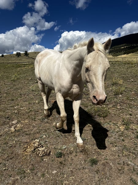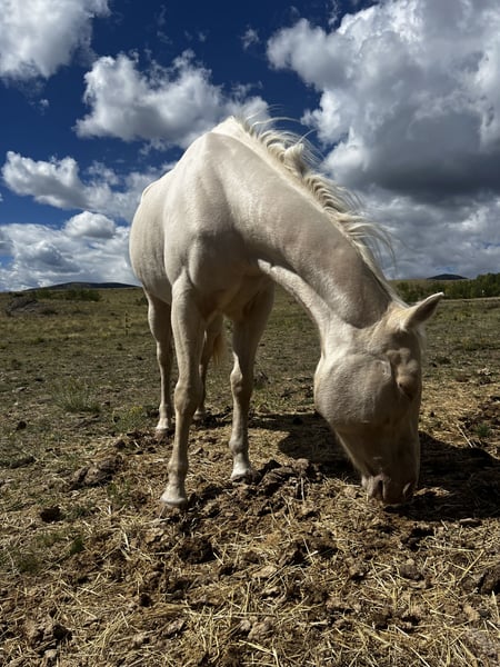 This beautiful white mare is looking for the right person to continue her journey. Since adopting her, my main focus has been improving her health and getting weight back on, and she’s come a long way. She can be ridden, lunged, and walked, but she will need intermediate-level work and consistency, along with access to a larger arena to continue her training. She does have a strong bond with her gelding son, so she would do best in a home with a larger pasture or the ability to separate them into different stalls to help her become more independent. She has a lot of potential for someone intermediate to experienced who is looking for a rewarding project horse. Message me for more details, videos, or to come meet her!