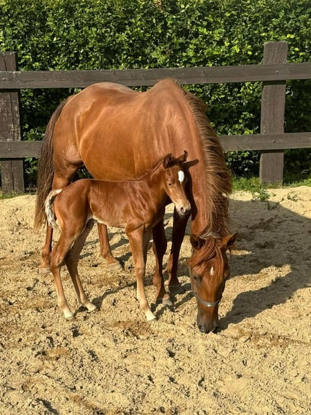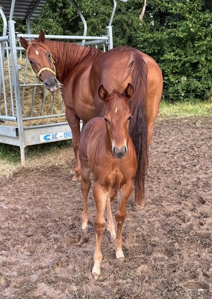 For sale is a broodmare Quarter Horse mare. She is 12 years old and approximately 15.1 hands tall. She adapts well and has already produced several very beautiful, correctly conformed foals. She is currently in foal to USS Whiz, a direct descendant of Topsail Whiz. She is very well-behaved and easy to handle, even with foals, she is absolutely top. She has been ridden recreationally with us, but only two or three times in the past year. Most rides were in the field, but she also handled the arena calmly. She was previously in training for some time. She is completely healthy and robust. We also have other broodmares, foals, and possibly a breeding stallion available. Feel free to call or send a message: 0157 36803742 All information provided is without guarantee, subject to price changes. Transport is possible, online purchase available.