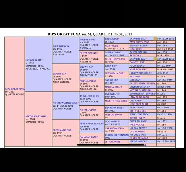 Zum Verkauf steht eine tragende Quarter Horse Zuchtstute. Sie ist 12 Jahre alt und etwa 151cm groß. Sie nimmt gut auf und hatte schon mehrere sehr schöne, korrekt gebaute Fohlen. Sie ist tragend von USS Whiz, einem direkter Topsail Whiz Nachkommen. Sie ist im Umgang absolut brav und unkompliziert auch mit Fohlen absolut top. Sie ist freizeitmäßig geritten worden bei uns allerdings nur zwei oder drei Mal im letzten Jahr. Sie wurde überwiegend im Gelände geritten, ging aber auch brav auf dem Platz. Sie war früher einige Zeit in Beritt. Sie ist komplett gesund und robust. Wir haben noch weitere tragende Stuten, Fohlen und eventuell auch einen Deckhengs. Gerne anrufen oder eine Nachricht senden 0157 36803742 Alle Angaben ohne Gewähr, Preisänderungen vorbehalten, Transport möglich, Onlinekauf möglich