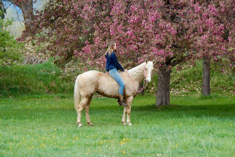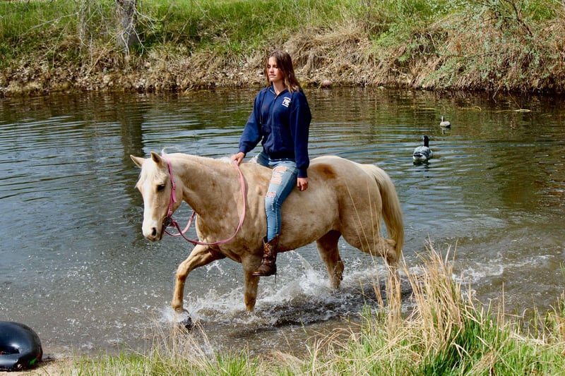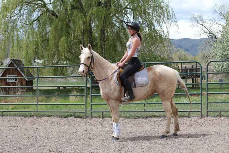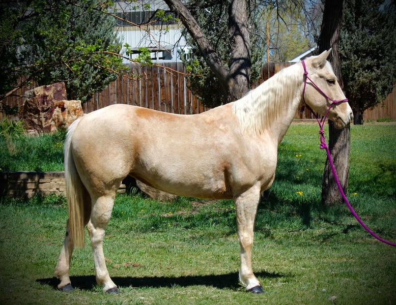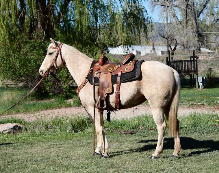 ONLINE AUCTION Place your bids at www.PlatinumEquineAuction.com Starting Bid $3500 Auction ends May 25th, 2025 Need a new saddle? Check out White Rock Saddles on our website or Facebook! Honest and reliable are the first words that come to mind when describing Cake Pop! This gorgeous palomino mare is 12 years old, stands 15 hands tall, and has a beautiful mane and tail with lots of chrome markings. Cake Pop is easy to catch, has great ground manners, and will follow you around like a puppy. My one-year-old can lead her around and love on her. She loads and hauls well, is good around other horses and ponies, and has even been around cows and sheep! Cake Pop has a sweet personality, a kind eye, and is always gentle. Not only is Cake Pop gorgeous, but she is also well-trained! She has an honest one-handed neck rein, stays behind the bridle, and responds to seat and leg cues. She walks, trots, and lopes nice circles, picks up both leads with smooth departures, side passes, and has a great stop. Cake Pop is a seasoned all-around horse with thousands of miles ridden in pastures, open country, and on trails. She has done ranch chores and had cattle roped off her. She is calm in busy towns with traffic and handles rough trails with ease, is sure-footed on rocky terrain, and will cross any obstacle. She is quiet and safe in any environment! If you’re looking for a horse you can ride weekly or monthly, Cake Pop is perfect! She is trustworthy and safe for any age or experience level. Cake Pop has also excelled in hunter jumper and cross country, with a big stride, flowy movement, and nice collection. She has done lots of cavaletti and footwork and knows how to use her body. This versatile horse is suitable for everyone, from my one-year-old packing around on her, to my lesson kids learning how to ride to advanced riders needing a pick up horse or something quick and athletic this mare is here for the job. Come meet Cake pop! ; she’s what dreams are made of! For more info contact Dynamite Horses Thea 970-632-6344 Located in Fort Collins, CO. ONLINE AUCTION Place your bids at www.PlatinumEquineAuction.com Starting Bid $3500 Auction ends May 25th, 2025 Need a new saddle? Check out White Rock Saddles on our website or Facebook!