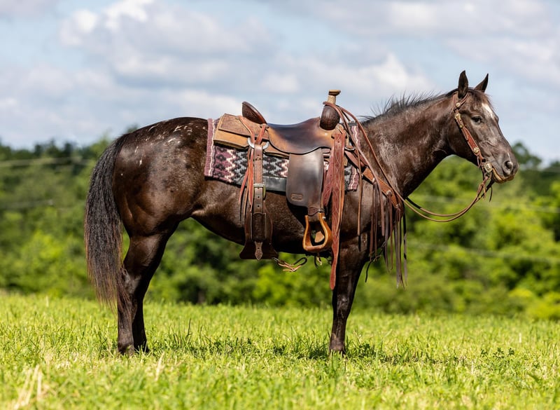 ONLINE AUCTION PLACE YOUR BIDS AT PLATINUMEQUINEAUCTION DOT COM $3500 STARTING BID AUCTION ENDS JUNE 30TH Here’s Betty! Betty is a 12 year old Appaloosa mare! She’s is the perfect size, standing at 14 hands and weighing 1050 pounds. She has a beautiful conformation. Big hipped and wide chest! She has the frame to carry any size rider! She is BEGINNER SAFE and FRIENDLY! She has been used on the trails, in fun shows, and used for lessons. She is super gentle and ultimately safe for any rider! On the trails, she will ride in the front or the back. She is sure footed and will cross any obstacle when asked. She’s a beginner’s dream trail horse. She is stylish, honest and classy. Very easy going, just drop her reins and enjoy the ride! Betty has also been used on the farm, from checking fence, packing the smallest cowboys and cowgirls for the day and riding around the cattle. Betty will direct rein, neck rein, back, walk, trot, & lope on both leads. Simply turn her on and turn her off, she will step directly down from a lope back to a walk with grace. She is very easy to ride and very simple to maneuver. She will work of leg cues as well. She will stand to be saddled, bridled, groomed and shod. If safety, style and brains are your priorities- Betty is a dream come true. From neighboring kids climbing all over her, to asking her to push cattle, to given riding lessons; Betty checks all the boxes. She is consistent and willing in everything she does. Whether you’re looking for a beginner horse or a confidence builder; Betty fits the bill. For any other information please contact PR Quality Horses Colton 606-748-9009 or Haley 859-475-2621 ONLINE AUCTION PLACE YOUR BIDS AT PLATINUMEQUINEAUCTION DOT COM $3500 STARTING BID AUCTION ENDS JUNE 30TH