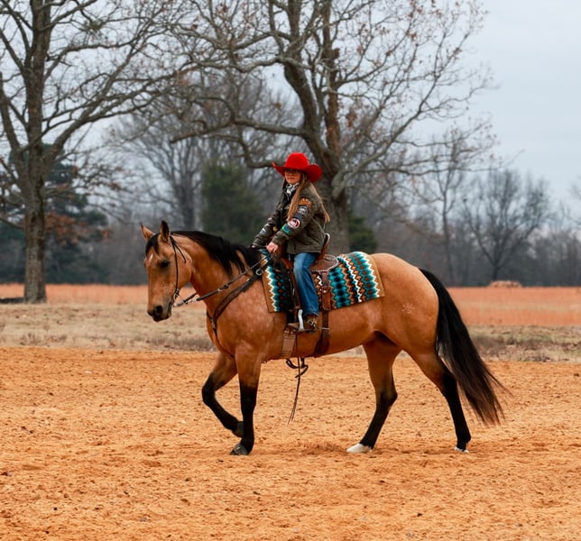 ⚜️ 𝓗𝓮𝓻𝓲𝓽𝓪𝓰𝓮 𝐖𝐢𝐧𝐭𝐞𝐫 𝓒𝓵𝓪𝓼𝓼𝓲𝓬⚜️ Happening now thru MONDAY | DECEMBER 29th - Available EXCLUSIVELY on HorseBid's website! For more details and to register visit: www.Horsebid.com CONSIGNOR CONTACT: Lacey Wilf 501-940-8704 LOCATION: Quitman, AR BREED: Quarter Horse REGISTERED: Yes REGISTERED NAME: Fritzy Slidin Solano COLOR: Buckskin HEIGHT: 15 AGE: 13 GENDER: Mare Fritzy Slidin Solano, affectionately known as Fritzy, is a 2012 AQHA mare standing a handy 15 hands, and she is the kind that makes you smile every time you swing a leg over. Stylish, confident, and effortlessly capable, she blends finished performance with a composed, gentle mind—wrapped up in a beautifully made package. Fritzy is a finished barrel horse with a solid, honest handle and the kind of consistency everyone looks for. She is truly the same mare every ride, even with time off—no surprises, no theatrics, just step on and go. She has extensive experience at the stockyards and out on the trail, where she proves her level-headed nature time and time again. Traffic, noise, new environments, and everyday chaos doesn’t bother her; she takes everything in stride with quiet confidence. On the ground, Fritzy is a standout. She has excellent manners, is easy to catch, polite to tack, and a pleasure to be around. Gentle to her core, she’s the kind that meets every situation with a calm eye and a willing attitude, making her enjoyable for a wide range of riders. She’s also easy on the eyes. Fritzy is well made with good bone, balance, and shape, the kind of mare that looks athletic and correct from every angle. Her pedigree speaks for itself, backed by proven bloodlines that add depth to her performance résumé and make her an exciting broodmare prospect when the time comes. She has clean, current front-end X-rays available for review. Finished, fancy, gentle, and cool as they come—Fritzy is the rare mare that brings ability, brains, beauty, and pedigree together in one very boujee package.