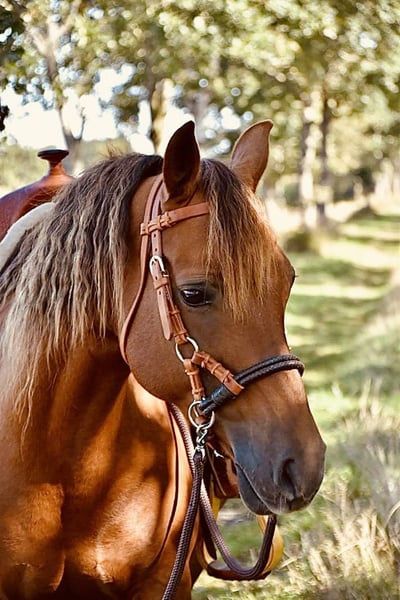 I have made the difficult decision to sell my beloved 16-year-old Quarter-Haflinger mix mare Talina Tiny Toon (height approximately 143 cm). Talina is absolutely sweet to handle, is great to ride, but has a bit of a stubborn streak ;-) She is ridden Western and loves trail rides, whether alone or in a group. She also has competition experience and has participated in speed rodeos. Talina is a laminitis pony (the last episode was several years ago) and is fed exclusively haylage with us, as she suffers from a mild hay dust allergy. She lives in an open stable and integrates well into a herd. A high-quality Western saddle, bridle, and other equipment are available. She will only be sold to the very best hands! For more information, feel free to message me.