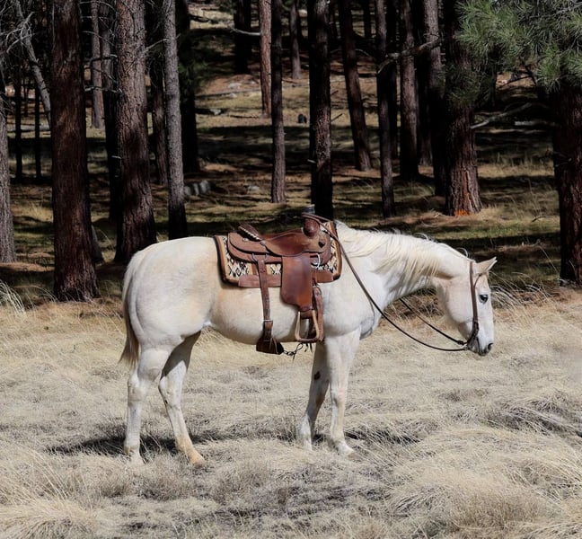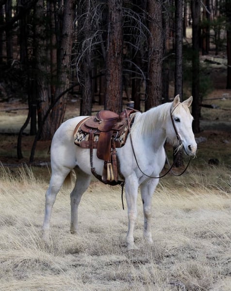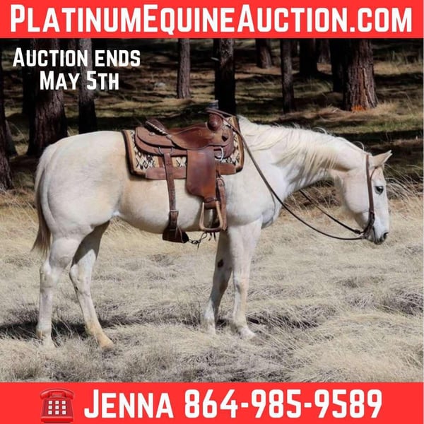 ONLINE AUCTION Place your bids at www.PlatinumEquineAuction.com Starting Bid $3500 Auction ends May 4th, 2025 Need a new saddle? Check out White Rock Saddles on our website or Facebook! Delilah is a 14 year old grade mare standing 15hh and is absolutely as reliable and bomb proof as they come! This kind-hearted, gentle mare is a perfect fit for any level rider! She’s an angel with all ages. You could ride her everyday or let her sit and you’re still going to get the same, in your pocket, safe sweetheart! She’s been ranched on all over and knows every aspect of everyday ranch duties. Doctoring cattle, and super fun to use in the branding one. taken to several rodeos & gymkhanas, brought to birthday parties, & done anything we have asked of her with ease!! If you’re wanting to take her to town she has seen it all! She has ridden through busy traffic, walked over free way bridges, she has no spook to any trash or semi trucks or even barking dogs! She is an awesome horse to ride in the arena, she catches both leads, will ride around bareback, one handed, neck reins and moves off leg pressure with ease! You can open and close gates, she never gets barn or buddy sour, and is a good solid horse for just about anyone! Delilah is great with other horses whether she is stalled or in a pasture! She doesn’t have a mean bone to her. Absolutely no buck, bite, or rear; she loves to get baths, is super easy to catch, stands perfectly while tacking up or just hanging out, and loads with ease! She will come with a clean coggins and health! Can help assist transportation to anywhere in the US! Located in Cottonwood, AZ. Contact Jenna Edwards 864-985-9589 with any questions. ONLINE AUCTION Place your bids at www.PlatinumEquineAuction.com Starting Bid $3500 Auction ends May 4th, 2025 Need a new saddle? Check out White Rock Saddles on our website or Facebook!