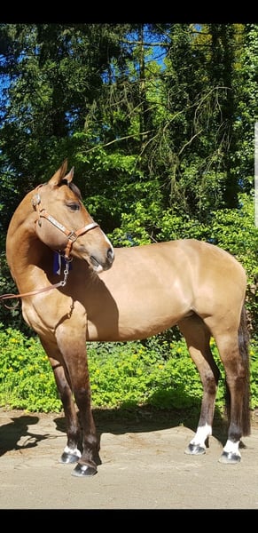 Willows Blue Cheyenne aka Chachi is looking for a new 5* home. Chachi is an absolute eye-catcher with that certain something. Now Chachi is seeking a new lifelong environment, as I unfortunately can no longer meet her needs due to time constraints. Chachi is a confident mare with a mind of her own, therefore not suitable for beginner riders or riding schools, but she is safe in all three basic gaits and definitely a horse with a good education. Chachi is farrier and loading friendly and is currently kept in a paddock, but she is also familiar with box stalls. She has always been barefoot with me. Chachi’s competition career has taken her to the LK1 level of the EWU with various placements and successes, including a state championship title with me. Chachi has also kindly carried young riders through their first tests. In recent years, Chachi has mainly spent her time going out on trails and perhaps teaching a few others how to ride. Chachi has no known pre-existing health issues. This is absolutely not a forced sale, but definitely a case of finding the right home over price. The lady is looking for a lifelong place where she simply fits in. Further pictures, videos, etc. are available upon request.