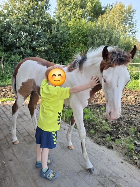 Ouarter Horse/ Paint Stute - für den Freizeitbereich oder Turniersport Zum Verkauf steht eine gesunde, aufgeweckte Scheckstute, geboren 04/25 Die Stute besticht durch ihren kompakten. korrekten Körperbau und viel "Lady Charme" Sie wird im Offenstall gehalten, kennt jedoch auch Boxenhaltung und wird selbstverständlich regelmäßig entwurmt und dem Schmied vorgestellt. Ihre robuste Konstitution und ihr ausgeglichener Charakter machen sie zu einem idealen Partner für den Freizeitbereich oder im Turniersport. Im Umgang ist sie offen und neugierig und mag neue Anregungen. Ihre Mutter (Fuchs, s. Foto) ist eine Quarterhorse Stute Der Vater (letzte Fotos) ein gekörter Deckhengst - Moonlight Bandit wurde mit 8.4 Punkten beim ZSSE e.V. als Europäisches Westernpferd qekört. Wer also einen "Eye Catcher" mit besten Voraussetzungen sucht, nimmt gerne Kontakt auf, um weitere Details zu besprechen und einen persönlichen Eindruck zu gewinnen.