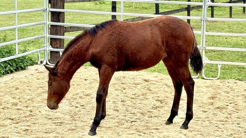 For sale is a promising American Quarter Horse filly, born April 2025. This beautiful brown filly is expected to reach a height of 145-148 cm and, due to her lineage (granddaughter of High Brown Cat), she could particularly excel in cattle disciplines. She will also surely bring much joy to the ambitious leisure rider. She stands out with her friendly character and her willingness to learn. Ideal for riders looking for a talented and reliable horse, but also very interesting as a future breeding mare with great papers. She is 6 Panel N/N. The filly is well socialized, knows large herds, and has already been weaned. She is well-mannered in handling, knows hoof care, and can be led easily. Foal ABC. If you are interested or need further information, please feel free to contact me. Visit us and see for yourself this wonderful filly!