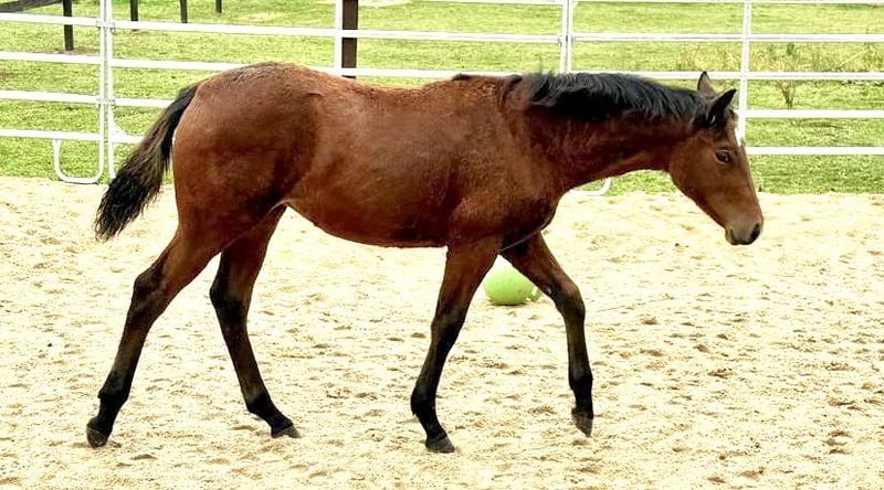 À vendre, une pouliche prometteuse Quarter Horse américain, née en avril 2025. Cette magnifique pouliche baie devrait atteindre une taille d’environ 1,45 à 1,48 m. En raison de ses origines (petite-fille de High Brown Cat), elle pourrait particulièrement convenir pour les disciplines de travail au bétail. Même pour le cavalier de loisir ambitieux, cette petite pouliche apportera certainement beaucoup de plaisir. Elle se distingue par son caractère amical et sa volonté d’apprendre. Idéale pour un cavalier recherchant un cheval talentueux et fiable, mais aussi très intéressante en tant que future jument d’élevage avec de belles origines. Elle est N/N pour le panel de 6, La pouliche est bien socialisée, connaît les grandes troupeaux et a déjà été séparée de sa mère. Elle est facile à manipuler, connaît les soins aux sabots et se laisse conduire calmement. Tout le nécessaire pour un poulain. Pour toute question ou information complémentaire, je reste à votre disposition. Venez nous rendre visite et convainquez-vous par vous-même de cette superbe pouliche !