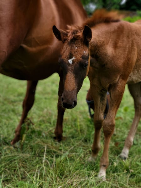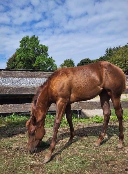 For our "CHLOE" (U R My Dancingqueen), we are also looking for a 5-star home. The beautiful Quarter Horse filly (born March 2025) has seen the light of day here with us. Her parents are also on our farm: Mother: Dancing in the Moonlite Father: Zippos King Bar Chloe is a stunning filly. Her coat color is hard to describe: a dark chestnut with a slight copper tint in the sun, which makes her coat shine. Her small white blaze gives her a very special distinguishing feature and adds a certain something to her appearance. She has a great conformation and her potential is already unmistakable. Her curious and lively nature makes it impossible not to fall in love with her. She will be suitable for both competitions and leisure activities. So, anyone looking for something truly special will not be disappointed by Chloe! Chloe has an equine passport from the DQHA, is enrolled in DQHA Infurity, and has the American papers (certificate of registration) from the AQHA. She is currently still with her mother in our open stable/on the pasture. She can either stay here for further rearing or move to her new home as soon as she is ready to be without her mother. If you would like to get to know Chloe or have any further questions, please feel free to contact us.