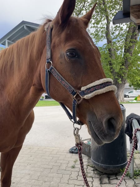 More information if you are seriously interested. Originally western trained, but experienced a lot of bad things at a young age, therefore very sensitive and has been ridden purely gymnastically according to biomechanics in recent years and also cross-country. Longer break from riding due to pregnancy. Not a beginner's horse and allergy sufferer (needs steamed hay or good haylage), inhalation device is also sold.