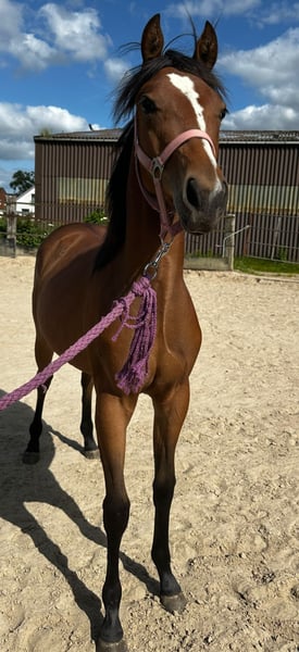 Rain Smart Dragon - Hermosa potranca de Quarter Horse, nacida en junio de 2024, con una estatura estimada de 1,50 m, busca un hogar de cinco estrellas. Esta joven talento posee todo lo que se desea en un futuro caballo de confianza. Está completamente socializada y domina a la perfección los fundamentos básicos de un potro. Rain conoce a niños, gallinas, perros, gatos, autos y diversas máquinas. Siempre muestra gran interés, nunca se asusta ni se muestra temerosa. La yegua tiene una confianza increíble en las personas. También se comporta ejemplarmente en el grupo, llevándose bien con animales mayores, menores, ancianos y otros de su edad. Rain es muy abierta y sociable. Nada la altera: ni atarla, ni bañarla, ni gatear debajo de su vientre, ni viajar en remolque. Simplemente una potranca soñada, que se adapta a todo. Rain es ideal para jinetes que buscan una compañera versátil en el ámbito del Western. Ya sea para trail, reining o como caballo polivalente, tiene el potencial para destacar en diferentes disciplinas. Su padre es Wee Hollywood Dragon y su madre proviene de la línea Footworks Finest. Si busca un caballo en desarrollo con excelentes aptitudes y un carácter amigable, esta yegua de Quarter Horse podría ser justo lo que necesita.