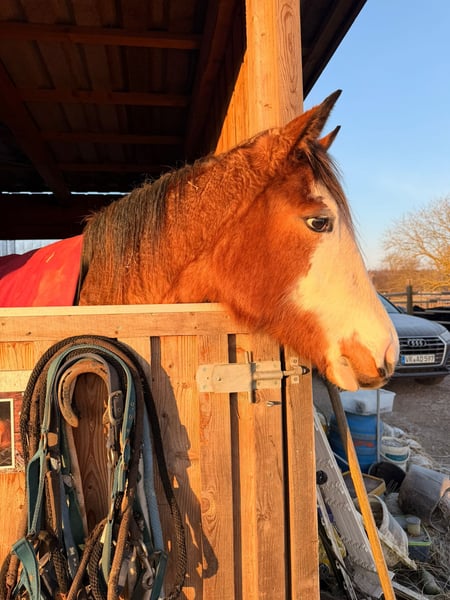Boons Shining River ist eine junge Quarter Horse Stute mit Half-Quarter Horse Papieren, geboren am 23.04.2024. Sie hat die Farbe Bay Roan Overo, ist aktuell etwa 149 cm groß und wird voraussichtlich ein Endmaß von mindestens 155 cm erreichen. Sie überzeugt durch ihren harmonischen Körperbau, korrekte Stellung und vielversprechende Proportionen und ist ein echter Eyecatcher. Neben ihrer ansprechenden Optik besticht sie vor allem durch ihren lieben, menschenbezogenen Charakter. Die Stute ist ruhig, entspannt und aufgeschlossen, besitzt ein sanftes und freundliches Wesen, ist brav im Umgang, unkompliziert und lernt sehr schnell. Boons Shining River ist gut erzogen und zeigt sich im täglichen Umgang stets angenehm. Die Stute ist gesund, altersgemäß geimpft und entwurmt. Sie kennt die Box mit Weidehaltung und wächst unter besten Bedingungen in Ruhe auf. Ihre Versorgung erfolgt mit hochwertigem Aufzuchtsfutter und guten Mineralstoffen, was ihre Entwicklung optimal unterstützt. In ihrer bisherigen Ausbildung kennt sie bereits das Fohlen-ABC, geht als Handpferd mit ins Gelände, lässt sich problemlos verladen und fährt Anhänger. Sie ist den Umgang mit Menschen und verschiedene Alltagssituationen gewöhnt. Väterlicherseits verfügt sie über eine gute Cuttingabstammung (Vater: Redwhiteandblue Boon), kombiniert mit sehr guten Reiteigenschaften von der mütterlichen Seite. Dadurch eignet sie sich sowohl für den Sport- und Turnierbereich als auch für den Freizeitbereich. Boons Shining River ist ein junges Pferd mit Herz und Zukunft und ideal für jemanden, der ein Jungpferd von Beginn an begleiten, fördern und eine echte Partnerschaft aufbauen möchte. Sie ist ein vielversprechendes Nachwuchspferd für ambitionierte Reiterinnen und Reiter ebenso wie für liebevolle Freizeitreiter.