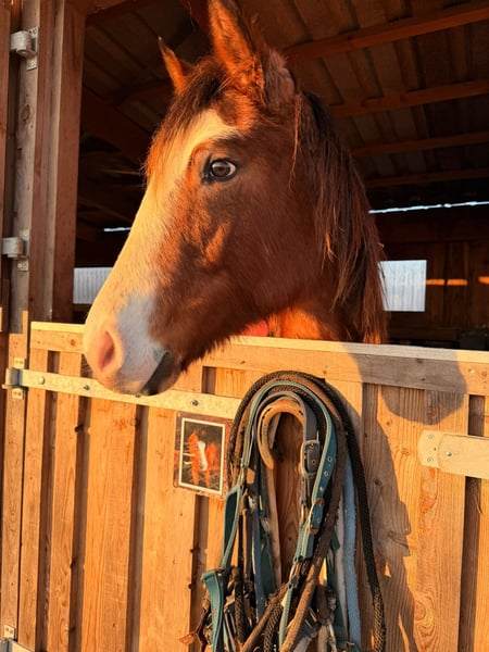Boons Shining River est une jeune jument Quarter Horse avec des papiers Half-Quarter Horse, née le 23 avril 2024. Elle affiche une robe baie roan overo, mesure actuellement environ 1,49 m et atteindra probablement une taille finale d’au moins 1,55 m. Elle séduit par sa silhouette harmonieuse, sa posture correcte et ses proportions prometteuses, faisant d’elle un véritable eye-catcher. Outre son apparence attrayante, elle se distingue surtout par son caractère doux et proche de l’humain. La jument est calme, détendue et ouverte d’esprit, dotée d’un tempérament doux et amical. Elle est bien dressée, facile à manipuler, simple d’approche et apprend très vite. Boons Shining River est bien éduquée et se montre toujours agréable dans son comportement quotidien. Elle est en bonne santé, à jour dans ses vaccinations et vermifuges. Elle connaît le box et a été élevée en pâture, grandissant dans des conditions optimales en toute tranquillité. Son alimentation se compose de nourriture de croissance de haute qualité et de minéraux adaptés, soutenant ainsi son développement de manière optimale. Lors de ses premières expériences, elle connaît déjà le vocabulaire de base pour un poulain, accompagne en main lors de sorties en extérieur, se laisse charger sans problème dans un van et voyage en remorque. Elle est habituée au contact humain et à diverses situations quotidiennes. Côté généalogie paternelle, elle possède une bonne lignée en Cutting (père : Redwhiteandblue Boon), combinée à d’excellentes qualités montables du côté maternel. Cela fait d’elle un cheval adapté aussi bien pour le sport et la compétition que pour la loisir. Boons Shining River est une jeune jument pleine de cœur et d’avenir, idéale pour une personne souhaitant accompagner, soutenir et construire une véritable relation avec un jeune cheval dès le départ. Elle représente un prometteur jeune cheval pour des cavalières et cavaliers ambitieux ainsi que pour des amateurs de loisirs épris de douceur.