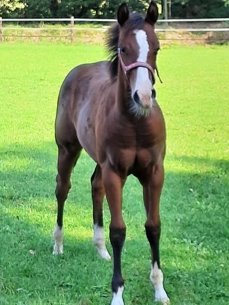 "Rufs Sparkle Tulip" ist ein Stutfohlen von "Arc Sparkle Magnetic" aka. "Black Panther" (Livetime Earnings 144.000 $ und Offspring Earnings von +100.000 $) aus der "Rufs Little Holly" (German Breeders Futurity 2017 Champion Level 3 open, dreijährig),geboren im April 2024. Die Stute "Rufs Little Holly" hat mit dem 2020 geborenen Hengstfohlen "Tinkers Chic Gun" bereits einen German Breeders Futurity 2023 Champion Level 2 open und Reserve Champion Level 3 open produziert. Die Stute wurde aktuell geröngt und ist Befundfrei! Weitere Informationen bekommen Sie gerne auf Nachfrage.