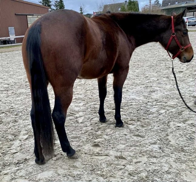 Sally Cant Wait ist eine bildhübsche Quarter Horse Stute, geboren am 18.04.2023, in der Farbe bay und mit einem aktuellen Stockmaß von 140 cm. Sie ist ein echter Eyecatcher mit toller Farbe, korrektem Körperbau und einem sehr schönen, stabilen Gebäude. Sally ist altersgerecht entwickelt, gesund und es liegen Röntgenbilder ohne Befund vor. Sie wuchs in einer gemischten Jungpferdeherde auf und kennt sowohl Offenstall- als auch Boxenhaltung. Sie wurde stets hochwertig mit gutem Mineral- und Kraftfutter versorgt. Tierarzt und Hufschmied sind ihr bestens vertraut und sie zeigt sich im täglichen Umgang ausgesprochen brav. Sally besitzt einen lieben, sanften und menschenbezogenen Charakter. Sie ist gutmütig, verschmust, zutraulich und wird regelmäßig gehändelt. Das Jungpferde-ABC, Putzen und Hufegeben bereiten ihr keinerlei Probleme. Wird jetzt langsam an die Bodenarbeit herangeführt. Sally ist eine tolle Bewegerin und ein sehr interessantes Nachwuchspferd, das später besonders im Reining-Showbereich großes Potenzial mitbringt. Aufgrund ihrer erstklassigen und sehr spannenden Abstammung eignet sie sich auch hervorragend für die Zucht. Sally ist eine Tochter vom erfolgreichen Tricked Out Spook. ein Spooks Gotta Gun Sohn. Ihre Mutter ist eine Smart Spook Tochter. Sie wird mit AQHA-Papieren und Equidenpass abgegeben und ist zudem NRHA European nominiert. Eine vielversprechende junge Stute mit Charme, hervorragender Abstammung und besten Voraussetzungen für Sport und Zucht.