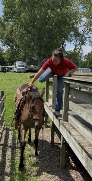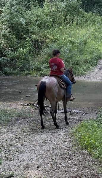 "AVAILABLE ON ONLINE HORSE AUCTION AT www DOT MagicHorseAuction DOT com BIDDING OPEN NOW thru TUESDAY | November 11TH! - BUY IT NOW AVAILABLE! *Final price will be determined on auction site* CONSIGNOR CONTACT INFO: Shauna Cooper 309-229-4249 LOCATION: Princeville, IL This exceptional bay roan filly is the total package: sound, sane, and stunning. Foxy is a registered AQHA 2-year-old with 90 solid days of professional training. She’s hands down the best 2-year-old I’ve ever had the pleasure of owning. Eager to learn, incredibly smart, and retains everything she's taught. She’s been extensively exposed to all kinds of environments and situations, and nothing fazes her: water, mud, logs, tarps, traffic, and more. Foxy crosses it all without hesitation and never gets rattled. Highlights: No scars or blemishes, 14.2 HH at withers - 15.00 HH at hip, Excellent manners: Easy to catch, stands tied quietly at the trailer, picket line, or wall, Sound and healthy, Feet trimmed: October, Teeth floated: July, 5-way vaccine: March, Regular worming schedule, Rides off immediately — no warm-up needed, even with time off, Great in the stall or turned out, Lopes off either lead, and has a great start to neck reining, Truly rides like a seasoned older horse. Foxy is ready to go in any direction — ranch work, trail, performance, or cow work. She’s gentle, level-headed, and absolutely broke beyond her years. Suitable for any rider ready to take her forward. You’ve got to ride her to believe it — come try her out and see for yourself!