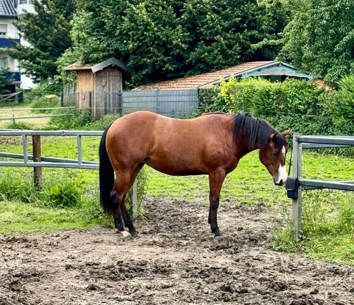 Bildschöne Quarterhorse Stute! Peptos Candy Girl - geb. 26.05.2022 Stute, bay Sire: Redwhiteandblue Boon Cutting Ltd Open Futurity/Champion in Italien Dam: Lil Dry Peppy Tochter - super Zuchtstute, super rittig und talentiert, im Gelände absolut unerschrocken, gut ausgebildet (war einige Monate im Profiberitt) konnte aber aufgrund einer Verletzung nicht geshowt werden - Ihr Vater Lil Dry Peppy Showrecord - Ihre Mutter Discounts Miss Poco war eine Superior Reining Stute Mega Stute mit großartigem Charakter. Sie ist intelligent, mutig, sensibel, menschenbezogen, mit viel Ausdruck und sehr guten Bewegungsabläufen, die Bemuskelung ist gigantisch. Ihre Vollschwester ist im Cutting Training und zeigt sich vielversprechend und talentiert. Candy lebt bei uns in einer kleinen gemischten Herde und ist sehr sozial. Wer eine außergewöhnlich schöne, korrekt gebaute Stute, mit guten Beinen, Freundin und Reitpartnerin sucht, wird hier fündig. Regelmäßig geimpft, entwurmt und dem Schmied vorgestellt. Schmiede und verladefrom DQHA einbezahlt Standort: 18528