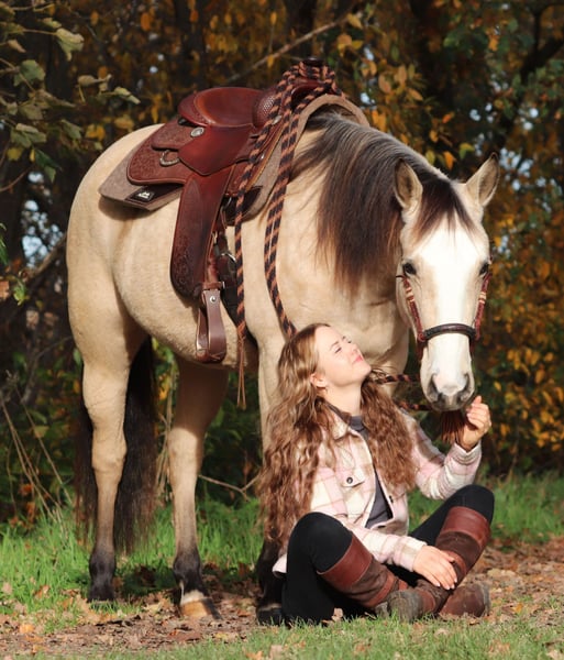 Philadelphia – eine zauberhafte junge Falbstute mit großem Herz und viel Talent Philadelphia ist eine wunderschöne, 3-jährige Falbstute mit einem aktuellen Stockmaß von aktuell ca. 1,48 m. Sie wurde an einem strahlend sonnigen Tag bei uns geboren und durfte ihre gesamte Jugend im Herdenverband auf weitläufigen Weiden verbringen – ein gesundes, artgerechtes Aufwachsen, das man ihr heute in jeder Situation anmerkt. Sie ist nicht nur optisch ein echter Hingucker, sondern beeindruckt vor allem mit ihrem liebevollen Charakter, ihrer Neugier und ihrer enormen Lernbereitschaft. Philadelphia wurde dieses Jahr behutsam und schonend im Rahmen des Natural Horsemanship angeritten. Sie versteht schnell, sucht immer die Verbindung zu ihrem Menschen und zeigt sich bereits jetzt als verlässliche junge Partnerin. Schon früh begleitete sie und sicher als Handpferd ins Gelände – Ausflüge auf Feldwegen und durch den Wald meistert sie gelassen und voller Vertrauen. Ein besonderes Talent bringt Philadelphia in der Freiarbeit mit: Sie läuft zuverlässig auf dem freien Zirkel, reagiert fein auf Körpersprache und kommt freudig auf Zuruf. Zudem beherrscht sie bereits die Ansätze des spanischen Schritts sowie das Ablegen. Diese natürliche Verspieltheit und ihr hoher „Will-to-please“ machen jede Trainingseinheit mit ihr zu etwas Besonderem. Auch unter dem Sattel zeigt sie sich angenehm und unkompliziert. Beim Aufsteigen zeigt sie eine besonders praktische Fähigkeit – sie parkt auf Kommando an der Aufstiegshilfe ein und wartet geduldig, bis man bereit ist aufzusteigen. Philadelphia ist eine Stute, die gefallen möchte und ihrem Menschen eine echte Partnerin sein will. Für ihr junges Alter bringt sie eine bemerkenswerte Ruhe und Ausgeglichenheit mit, gepaart mit Talent, Motivation und einem weichen, ehrlichen Wesen. Ich wünsche mir für sie ein Zuhause, in dem sie weiterhin liebevoll gefördert wird, wo man ihre Fähigkeiten schätzt und ihre Entwicklung mit Freude begleitet. Philadelphia wird ausschließlich in allerbeste Hände abgegeben. Auf Wunsch kann selbstverständlich eine AKU gemacht werden, und nach Absprache wird sie gerne gegen eine Spritpauschale persönlich in ihr neues Zuhause gebracht. Wenn du ein junges Pferd suchst, das durch Charakter, Talent und Herz überzeugt – dann ist Philadelphia vielleicht genau die Partnerin, die du suchst. Ihr findet uns in 49779 Oberlangen, die genaue Adresse schicke ich euch gerne nach einem persönlichen Gespräch zu. Ihr könnt mich unter der Handynummer 01624348386 erreichen. Wir nehmen uns für das Probereiten und anschauen gerne viel Zeit, damit dies in aller Ruhe und Ausführlichkeit verlaufen kann. Um sicher zu gehen, dass sich nur Leute mit ehrlichem Interesse melden und nicht wie in letzter Zeit häufiger vorgekommen, Leute als Wochenendausflug kommen, lassen wir uns diese Zeit mit einem kleinen Betrag von 50€ von euch entlohnen. Dieser wird natürlich beim Pferdekauf erstattet. Danke für Ihr Verständnis!