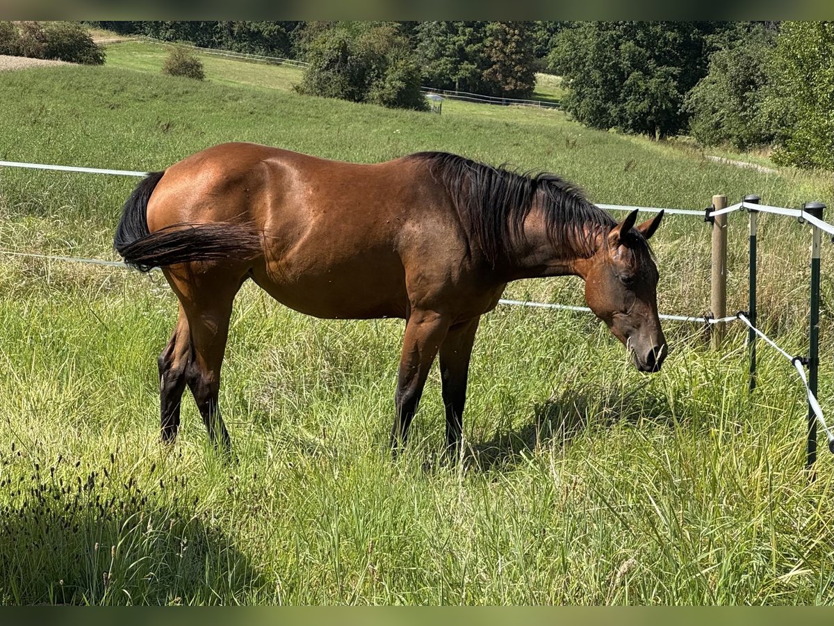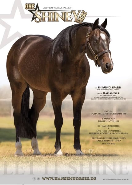 Zum Verkauf steht eine hübsche Quarterhorse Stute aus eigener Zucht. Ihr Vater ist ONE SHINEY TREAT, der in 2023/2024 Top 3 / Top 2 der besten Vererberhengste war. Ihre Mutter ist producing DAM of NRHA& DQHA Futurity finalist Open ! Mit Legenden wie Shining Spark, Grays Starlight, Peppy San Badger, Doc O Lena, vereint sich hier bestes, altes Quarter Horse Blut in moderner Verpackung. Wer also Spass an Reining, Ranch Riding aber auch Cowklassen hat, findet hier einen tolles Nachwuchspferdchen mit allerbesten Vorraussetzungen einmal erfolgreich im Sport zu laufen! DQHA & NRHA startberechtigt! ‚Joy’ ist gesund, bestens sozialisiert, kennt führen, putzen, Hufschmied, verladen und etwas Bodenarbeit. Sie ist sehr aufgeschlossen dem Menschen gegenüber und im Umgang unproblematisch. Wegen Aufgabe der Zucht und Bestandsreduzierung zum attraktiven WINTERPREIS abzugeben.