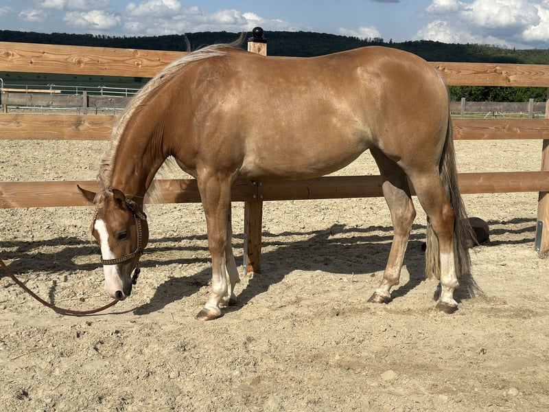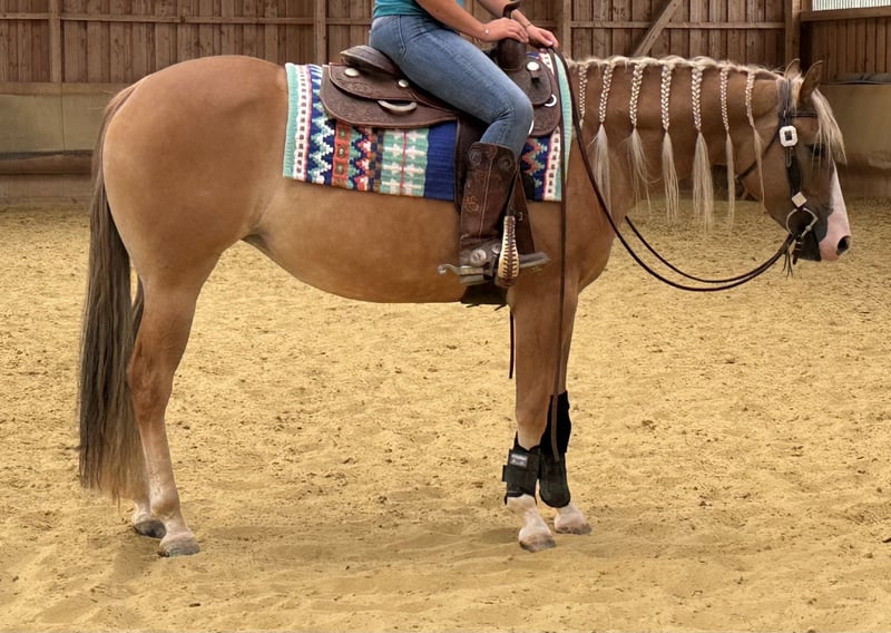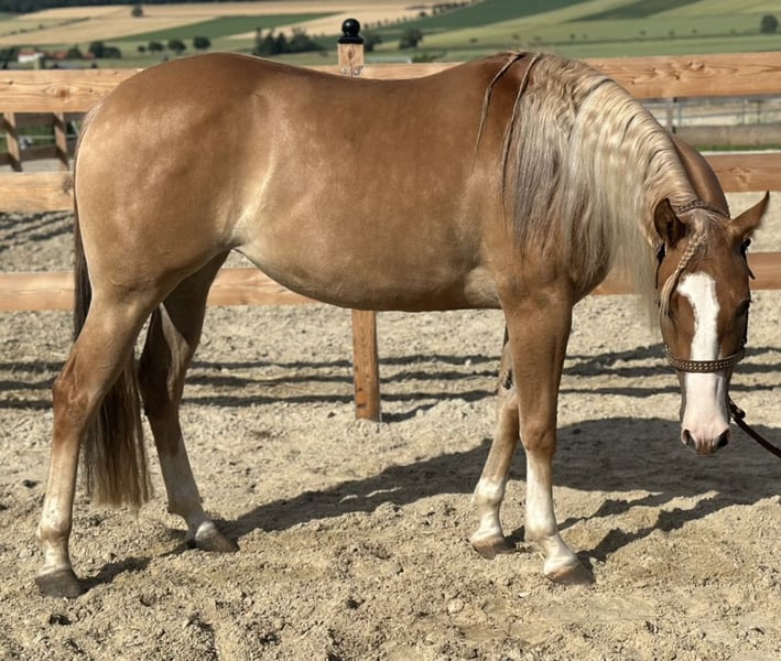 ¡Esta yegua de ensueño está buscando su hogar perfecto! Red Dun con crin rubia 6 panel n/n Papeles de primera Carácter absolutamente encantador Fácil de montar Gienny es, sin duda, el paquete completo perfecto. Tiene un carácter absolutamente encantador, con un gran deseo de complacer y es muy cariñosa. Es un verdadero atractivo visual. ¡Excelente prospecto para Futurity! Es segura en todas las maniobras y tiene un estilo impresionante. Ha sido entrenada por mí como no profesional, siempre con mucho amor y tiempo. Directamente del criador. La madre se puede ver sin problema. Gienny está en excelente forma y no tiene vicios ni limitaciones. Es tranquila para el herrador y para cargar. Se dispone de radiografías de muy buena calidad de junio de 2024. Solo se entregará en buenas manos. Se puede enviar un video a solicitud.