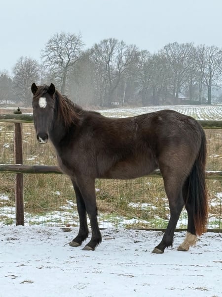 Typvolle AQHA Stute für Sport, Zucht und Freizeit 🐴 Diese wunderschöne, dreijährige AQHA-Stute in der besonderen Farbe Smoky Black ist auf der Suche nach einem passenden neuen Zuhause. Sie überzeugt nicht nur durch ihre interessante, leistungsorientierte Abstammung, sondern vor allem durch ihr ausgeglichenes und menschenbezogenes Wesen. Die Stute ist sehr lieb im Umgang, aufmerksam und freundlich – ein idealer Partner sowohl für ambitionierte Reiter als auch für Züchter. Details: • 3-jährig • Farbe: Smoky Black • 5-Panel N/N (frei von Erbkrankheiten) • roh (nicht angeritten), kennt jedoch das tägliche Handling • menschenbezogen, brav und unkompliziert • wächst artgerecht auf Sie ist aktuell noch nicht gearbeitet und kann somit individuell nach eigenen Vorstellungen ausgebildet werden – perfekte Voraussetzungen für den Start im Reining-, Ranch Riding- oder Freizeitbereich. Durch ihre Farbe, Gesundheit und ihr korrektes Fundament ist sie ebenso hochinteressant für die Zucht. Ein vielseitiges Nachwuchspferd mit Perspektive – für Reiter und Züchter gleichermaßen. 📞 Bei ernsthaftem Interesse freuen wir uns über eine Nachricht oder einen Anruf.