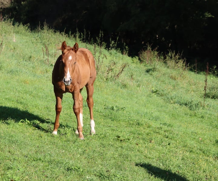 AH PERFECT MATCH ist eine wunderschöne Stute in der Farbe Fuchs, eine erstklassige Bewegerin und von guter Abstammung. Die Stute wächst im Herdenverband auf und wird regelmäßig geimpft, entwurmt und dem Hufschmied vorgestellt. Der Vater "Colonels DANCING GUN" ist in der Reiningszene bestens bekannt als Reiningworldchampion 2023. Die Stute ist NRHA Germany einbezahlt.