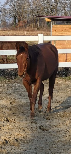 Zum Verkauf steht die bildhübsche Quarter Horse Stute Dun It For June, geboren am 25.03.2022, in der Farbe Sorrel mit einem aktuellen Stockmaß von ca. 146 cm. Sie ist korrekt gebaut, kompakt und ausgewogen bemuskelt und überzeugt durch ihre harmonische Erscheinung. Die Stute ist gesund und 5-Panel n/n getestet. June besitzt einen ganz besonders lieben und angenehmen Charakter. Sie ist sehr menschenbezogen, verschmust, zutraulich und stets bemüht, alles richtig zu machen. Im Umgang zeigt sie sich unkompliziert, vertrauensvoll und super brav, was sie zu einer angenehmen Partnerin im täglichen Training macht. Sie ist in der Herde aufgewachsen, kennt sowohl Offenhaltung als auch Paddockbox und ist bestens sozialisiert. Tierarzt und Hufschmied sind ihr vertraut, sie ist geimpft und regelmäßig entwurmt. Insgesamt präsentiert sie sich gut erzogen, gepflegt und altersgerecht ausgebildet. Dun It For June verfügt über gute, bequeme Gangarten und wurde schonend sowie fair eingeritten. Sie befand sich ein Jahr im professionellen Beritt, kennt alle wichtigen Basics und bringt ein sehr gutes Reiningpedigree (Dun It for Whizkey x Doctor In Diamonds) mit. Dadurch ist sie bestens geeignet für Reining, Ranch Riding sowie weitere Disziplinen im Westernsport. Die Stute ist in die EWU Jungpferdeprogramme einbezahlt und könnte bereits in diesem Jahr in Jungpferdeklassen vorgestellt werden. Ob als zukünftiges Showpferd oder als hochwertiger Freizeitpartner - mit ihrem Talent, ihrer Einstellung und ihrem Charakter ist sie ein echtes Versprechen für die Zukunft.