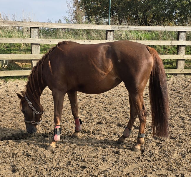 Super liebe und hübsche QH stute aus 2021, Vater Woodys Time (Cutting) x mutter Arcchica (reining/cutting linien). Sie is cutting gestartet aber auch super für kinder/familien oder andere richtungen. Sehr lernwillig und arbeitet gerne, brav, kennt ausreiten, Gesund. Panel test negative über ihre eltern, wegen super linien auch für zucht. Geht weiter, wegen start selbst gezogen jungpferd.