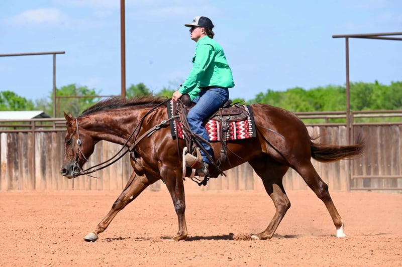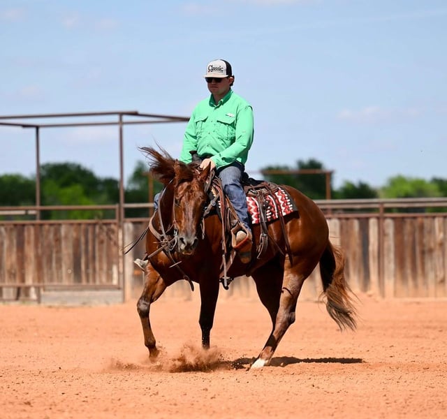 🌟𝑨𝒑𝒓𝒊𝒍 𝐀𝐋𝐋 𝐒𝐓𝐀𝐑 𝐋𝐈𝐍𝐄𝐔𝐏🌟 Happening now thru MONDAY | APRIL 6th - Available EXCLUSIVELY on HorseBid's website! For more details and to register visit: www.Horsebid.com CONSIGNOR CONTACT: Nate Ballerino Horse Co 254-716-9588 LOCATION: Waco,TX BREED: QH REGISTERED: Yes REGISTERED NAME: Night Sailing Chick COLOR: Sorrel HEIGHT: 15.1 AGE: 4 GENDER: Mare This Late Night Stopper mare was trained in a reining program and knows all of her maneuvers. She’s broke, handy, and stand 15.1 hands. She’s got the size, the handle, and the kind of foundation that makes her easy to go use. She’s the kind you can ride now and breed later, with the ability to be useful today and valuable down the road. Please Call Nate Ballerino at 254-716-9588 with any questions. Nation wide shipping can be arranged.