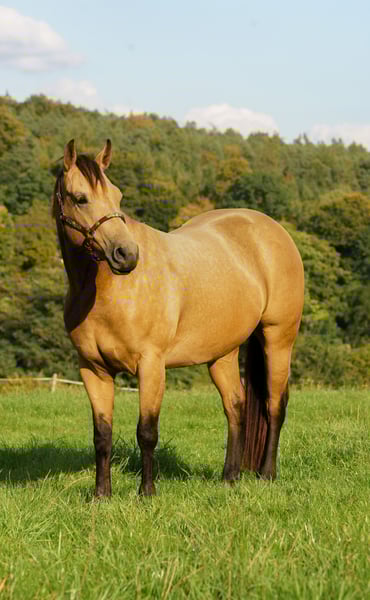 Burbery was born on our farm and was raised in a herd environment, ensuring her natural herd instincts. She is a daughter of the NRHA World Champion JACS LITTLE SUNRISE. Her dam competed successfully for many years as an all-around horse with a focus on reining at EWU competitions in LK1. Burbery is not only attractive but also very talented, and with further training, she has the potential to become a good competition horse. Currently, she has a solid foundation in Western riding.