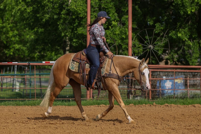 ▪️▫️◾️𝐭𝐡𝐞 𝑴𝒂𝒚 𝐒𝐞𝐥𝐞𝐜𝐭◾️▫️▪️ Happening now thru MONDAY | MAY 4th - Available EXCLUSIVELY on HorseBid's website! For more details and to register visit: www.Horsebid.com CONSIGNOR CONTACT: TR Livestock Company 605-370-4644 LOCATION: Rusk Texas BREED: AQHA REGISTERED: Yes REGISTERED NAME: Modonna COLOR: Palomino HEIGHT: 14.2 AGE: 4 GENDER: Mare Madonna is a 4 year old AQHA beautiful palomino filly sired by “Modern Gun” (LTE of over $360k) and out of an own daughter of “Gunnatrashya” (LTE of over $233k) Madonna stands 14.2 hands tall and is stout! She is clean, straight and correct in every! Madonna started her career under saddle with a reining foundation, she has a big stop, great spins and very athletic. She trots and lopes beautiful circles, with a low headset and always soft and willing! She’s smooth, balanced, and honest, with the kind of feel that makes her enjoyable to ride whether you’re in the arena or just going for a relaxing ride. Madonna is definitely a standout filly with the pedigree, mind, and train ability that’s getting harder and harder to come by. She stays gentle and always aims to please, she wants to do her job right and takes pride in it, giving you the same try every time you swing a leg over. Madonna is very gentle and quiet and is sweetheart on her back or on the ground, she has a in your pocket personality and wants to be your best friend! She’s excellent to bathe, shoe, tie, and trailer. Out on trails she’s a pleasure to ride, quiet, and steady. She’s good with traffic and all the everyday sights and sounds, taking everything in stride. She’s not just a talented filly with a great pedigree, she is one you look forward to riding every single day. If you’re looking for a kind, versatile, filly with an exceptional mind, that can go absolutely any direction be sure to check her out!