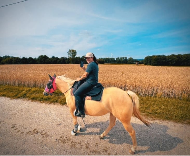 Goldie has earned her name not only because of her stunning appearance but especially because of her heart of gold! She is simply a treasure. Whether in the terrain, at competitions, or during training sessions, Goldie is always motivated and a reliable partner at just 4 years old. She has been gently backed and is easy to handle. The farrier, trailer, nothing is a problem. She is currently housed with mares and geldings. Goldie measures 1.45 m (14.1 hh) Born in 2021 Goldie is being offered together with her saddle. Her truly gentle nature makes her suitable even for novice riders. Only in the best hands, as we unfortunately have to part with her due to personal reasons.