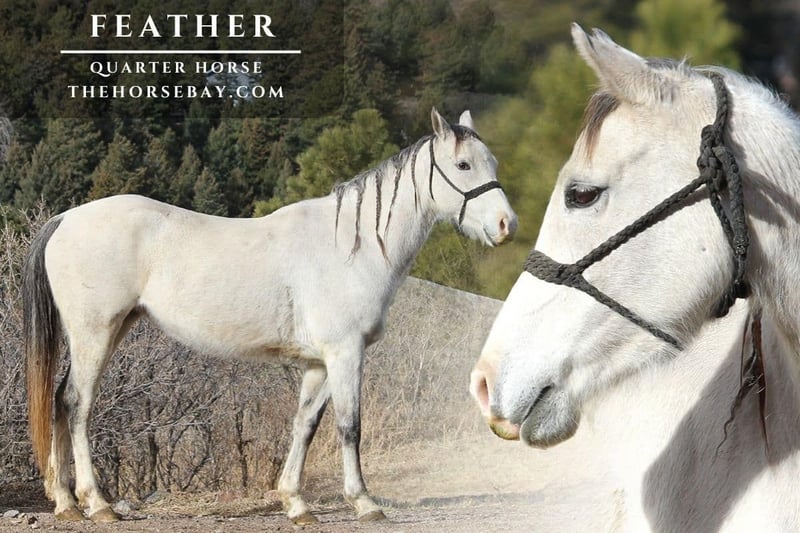 Feather is a 14.2-hand, 5-year-old, grade quarter horse mare. This mare is smart, sound, and stunning. She has the foundation and the ability to go in any direction. Feather will move off your leg, neck reins, backs up softly, loads right up in any trailer, stands tied, and is generally a low horse in the pecking order. She can even be ridden safely down the road bridleless. She always picks up her correct lead under saddle and is very easy to lunge. Feather stands still for tacking up and mounting. She has been ridden in and out of the arena. She will go over just about any obstacle, crosses water with ease, and is very surefooted on all terrain. My favorite thing about this mare is that just about anyone can ride her; she is safe and willing. However, she is not a pokey horse; she can have some get-up-and-go when asked. She has been ridden in English and Western. We have started her on the barrel pattern and even taken her over a couple of jumps. This mare is always up for whatever the day brings. Feather is generally an easy keeper; she gets afalfla twice a day with no maintenance or extra grain needed. She is not currently shod, has always been sound, and she had her teeth floated in February 2026.