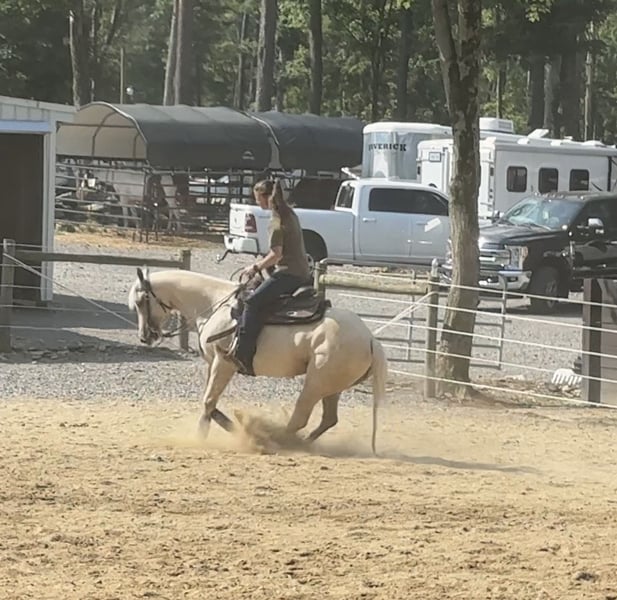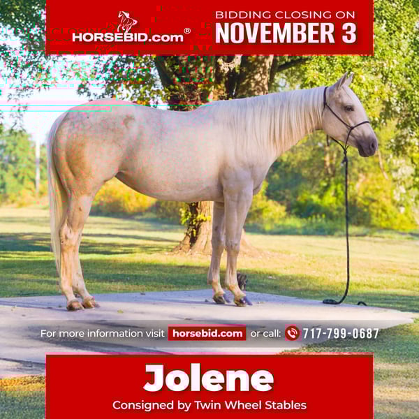 ⚜️𝐓𝐇𝐄 𝐅𝐀𝐋𝐋 𝐇𝐄𝐑𝐈𝐓𝐀𝐆𝐄 𝐂𝐋𝐀𝐒𝐒𝐈𝐂⚜️ Happening now thru MONDAY | NOVEMBER 3rd - Available EXCLUSIVELY on HorseBid's website! For more details and to register visit: www.Horsebid.com CONSIGNOR CONTACT: Twin Wheel Stables 717-799-0687 LOCATION: New Holland, PA BREED: AQHA REGISTERED: Yes REGISTERED NAME: NewPalsMetallicQueen COLOR: Palomino HEIGHT: 14.3 AGE: 4 GENDER: Mare Offered by Twin Wheel, we're proud to present NewPalsMetallicQueen, affectionately known as Jolene. A real life unicorn. The sweetest kindest mare that looks like she belongs in a land of castles and magic. This exceptional mare combines proven performance bloodlines, a solid reining foundation, and real-world experience to make her a standout in or out of the arena. We owned this mare since she was a yearling. Jolene was started by Palmer Performance Horses where she had 8 months of professional reining training. After returning home we rode her everywhere and did a little bit of everything. Overnight camping trips, ranch sorting, ranch riding, trails, obstacle courses, liberty, tricks, used her in clinics, demos, lessons and all the while kept building on her reining foundation. Jolene has a nice flying change, easy lead departures, turn around, sliding stop, slow jog, extended trot. She moves off of your leg, stops and backs up off of just your seat. She’ll ride around completely tackless. She’s a very fun and talented horse, easy and super comfortable to ride. She knows her job and would thrive with a go-getter youth or non-pro in the reining or ranch riding. This mare has never bucked or done anything nasty her whole life. I trust her with any level rider. She’s used to kids all over her, dogs, farm equipment, cows, etc. Naturally wants to track a cow. Huge bonus, this mare keeps a very neat and tidy stall. You’ll find a perfect pile in the corner. She also keeps herself very clean. She’s respectful on the ground, is great for the farrier, ties, crossties, ground ties. She loads, unloads and travels with ease. Whether you want to show in reining or ranch riding, or simply enjoy a dependable, well-trained horse for all-around fun, Jolene will not disappoint. I will be so sad to part with her, my wish is that she go to someone who will appreciate her as much as we have. Sire: Xtra New Pal Voodoo – Reining and roping stallion with LTE over $109,000. A son of Shiners Voodoo DR(NRHA $6.6 Million Sire) out of Wimpys New Pal (producer of nearly $300,000, by Wimpys Little Step) Dam: One Little Metallic – An own daughter of Metallic Cat, the #1 leading sire for NCHA and NRCHA, with LTE of $637,711 and offspring earnings exceeding $78.5 million. NRHA Nominated AQHA Registered Sound and No Vices Current Coggins UTD on vaccines and deworming Her video is worth watching - she’s so elegant and just beautiful to watch.