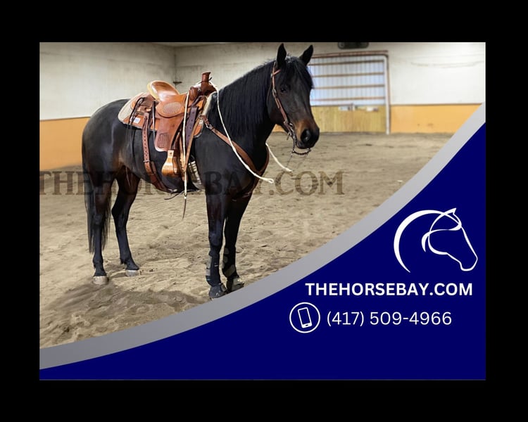 OPEN BIDDING ON THEHORSEBAY,COM. SALE ENDS ON 03/05 @ 3:40PM CT. More information is available on the website, including an UTD vet inspection, Coggins, video, images, and the owner's contact information to ask questions, request information, or make arrangements to visit. Sierra is a Dark Bay Quarter/Percheron Cross. She is registered with the American Ranch Horse Association (#15247). Sierra is a 3 going-on 4-year-old classy lady, having received one plus years of professional training. She will work effortlessly in the performance show ring. She is quick and nimble for a draft cross and can easily move cattle. She stands for the farrier, tack, grooming, and mounting. She has started to drive and will need to finish. She is calm and steady under a harness; she just needs to be introduced to the cart or carriage—an excellent ranch or eventing prospect.