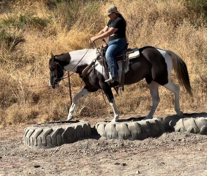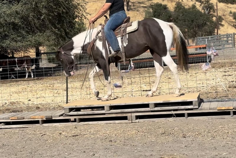 ONLINE AUCTION Place your bids at www.PlatinumEquineAuction.com Starting Bid $3500 Auction ends September 22nd, 2024 Need a new saddle? Check out White Rock Saddles on our website or Facebook! Prada, a stunning 3-year-old crossbred filly standing firmly at 14.3HH, she exhibits a unique grulla paint coat, striking blue eyes, and a thick mane and tail. Her Gypsy Vanner crossbreeding heritage ensures a calm demeanor and attractive features. Despite her young age, Prada has extensive trail experience, exhibiting calmness and composure in various situations. Prada has never offered to bat an eye at anything on the trail, she doesn’t get anxiety in a high pressure situations, and is safe and easy to get along with for most any level rider. She demonstrates exceptional willingness, eagerly crossing trail obstacles without hesitation. Prada’s temperament is characterized by more ‘whoa’ than ‘go,’ allowing her to effortlessly adapt to diverse riding environments, whether solo or in a group setting. She is not buddy nor barn sour. Her arena training is progressing well, showcasing a nice, easy walk-trot-lope in both directions, accompanied by a remarkable stop and collected backup. Prada is responsive to neck reining and leg pressure. She has a great start and will contribute to progress in the western world, or I also believe she could make a big boom into the English world as well. On the ground, she is a delight to handle, demonstrating eagerness to please and a love for water. She will drink out of the hose while bathing her. Prada is well-behaved, easy to shoe, and possesses a strong desire to learn and satisfy her rider’s expectations. She is a complete sweetheart, she will stand tied, hauls great and gets along with other horses. Prada has never acted “fresh” with time off and handled it well. This is an excellent young mare with loads of potential to go any way you want to take her. She is located in Bitterwater, CA. For more info or schedule a time to come meet Prada, contact Cheyenne Rey 831-537-8746. ONLINE AUCTION Place your bids at www.PlatinumEquineAuction.com Starting Bid $3500 Auction ends September 22nd, 2024 Need a new saddle? Check out White Rock Saddles on our website or Facebook!